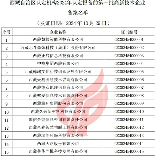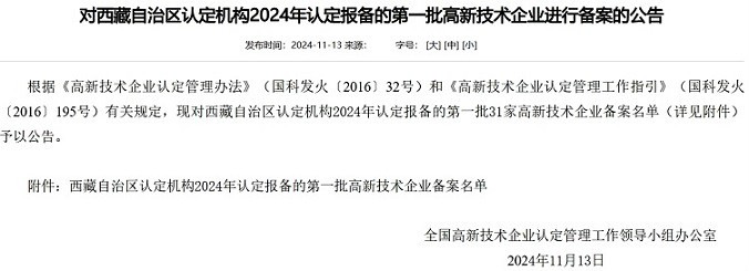 在复审认定过程中,公司提交并汇报了详尽的高新技术企业认定材料,包括知识产权、科技成果转化、研发投入、研发人员构成等关键信息。主管单位西藏自治区科学技术厅也对公司的技术创新能力、研发成果、财务状况等方面进行了全面评估。经过严格的复审认定程序,公司顺利地再次被认定为高新技术企业。这一认定不仅是对公司前期科技创新成果的肯定,也是对公司未来持续创新发展的鼓励和鞭策。