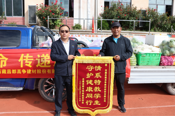 慰问仪式上,昌都高争表示,企业将始终秉持“回馈社会、服务群众”融入发展血脉,此次慰问既是对特教事业的实际支持,更是爱心与温暖的传递,“服务雪域发展、造福高原群众”的初心,此次慰问既是物资上的支持,更是精神上的鼓励,希望这份温暖能为孩子们的成长注入力量。学校负责人对爱心之举深表感谢,称这些贴合高原生活的物资承载着沉甸甸的关爱,将切实改善孩子们的生活条件,把每份善意转化为教育动力,并送来一面锦旗,表示感谢。